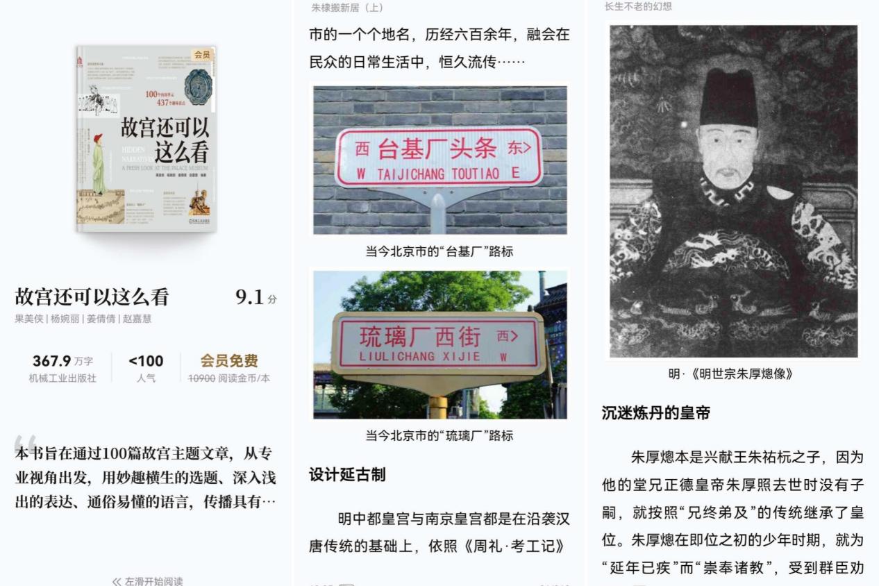 他像发现新大陆一样,缠着我给他读。晚上睡觉前,还可以开启华为阅读的听书功能,选择精品音色中的“磁性大叔”,那深沉的声音讲述着红墙里的趣事,历史仿佛一下子“活”了过来!