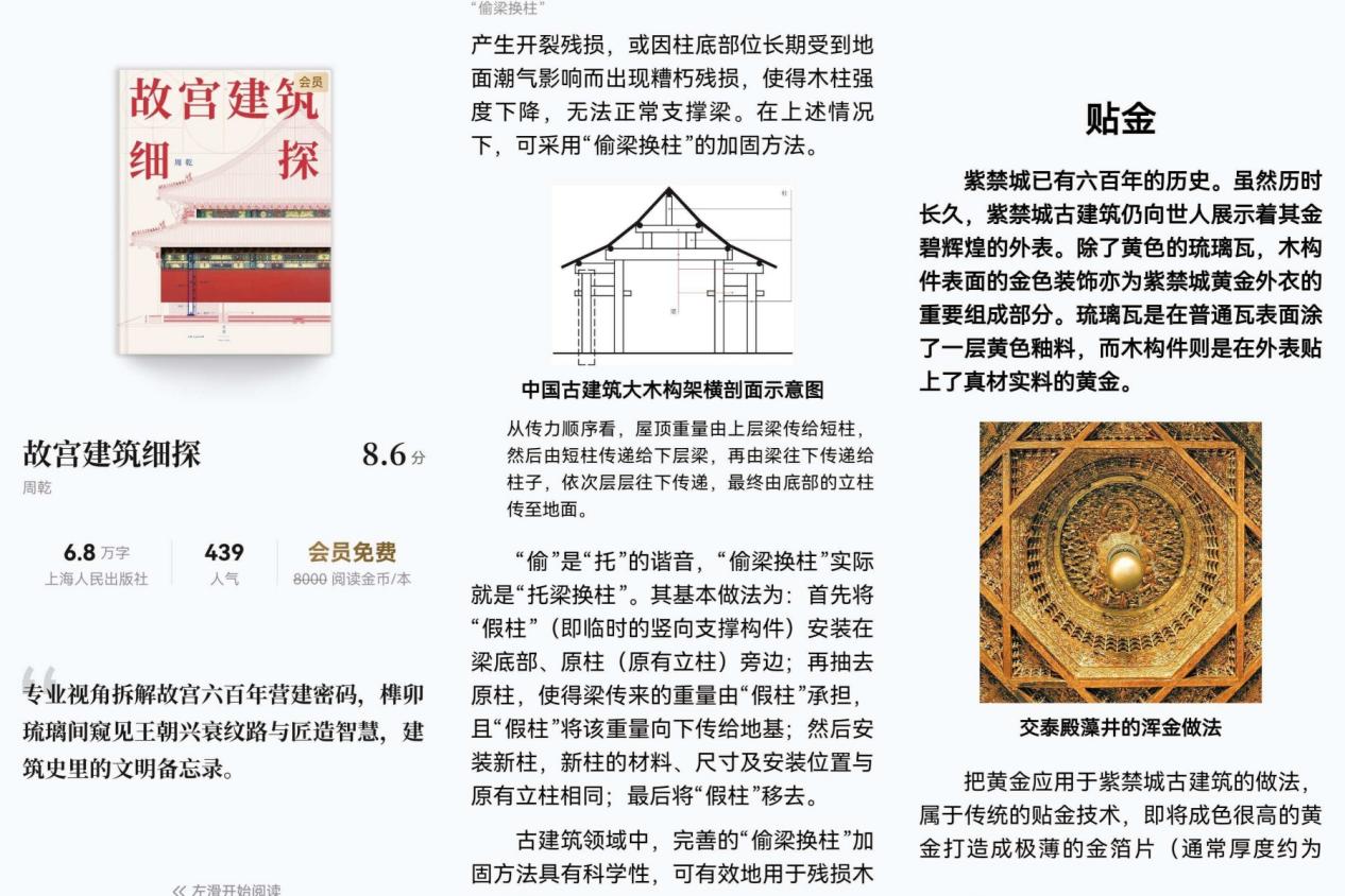 书单里另一本让孩子着迷的是《故宫建筑细探》。这本书从专业的视角拆解故宫六百年的营造故事。当儿子知道老祖宗在原材料比现代匮乏很多的古代,用聪明才智,创造出一处处令人惊叹的建筑作品时,眼睛里全是崇拜。他第一次明白,历史不只是书本上冰冷的文字,它藏在每一处建筑细节里,是有温度、有传承的。