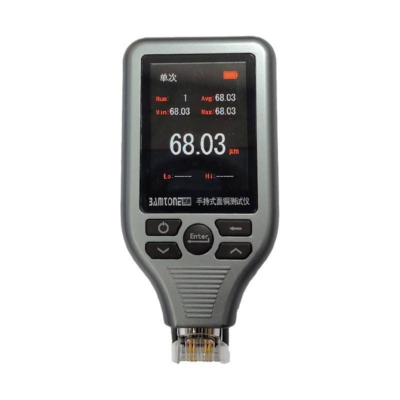 便携高效,重塑产线检测流程便携设计是手持式面铜测试仪Bamtone T60C一大特色。其轻巧的机身,符合人体工学设计,让操作人员可以轻松携带至生产线、仓库或实验室的任何角落,实现“随时随地,随心可测”。相比台式设备,极大提升了检测的灵活性。开机、校准、测量,整个过程仅在瞬息完成,数据实时显示在清晰的屏幕上。这种高效性使得100%全检或大幅增加抽检频率成为可能,从而在源头更有效地管控质量,全面提升生产效率和产品良率。