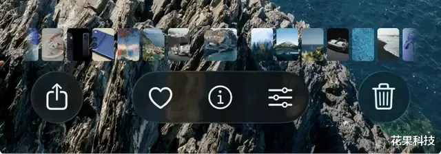 在 iOS 26.1 Beta 1 中,苹果减弱了全屏查看照片时底部按钮的液态玻璃效果,提升了复杂图片中底部按钮的可读性。