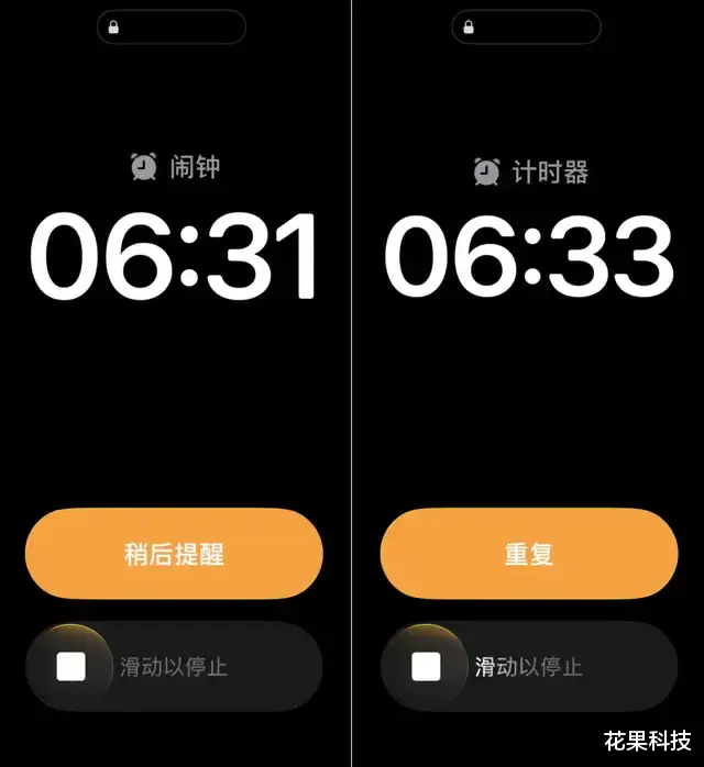 闹钟和计时器在锁屏状态下提醒时的停止按钮由原来的点按式改成了滑动式,更新后需要「滑动以停止」闹钟或者计时器。