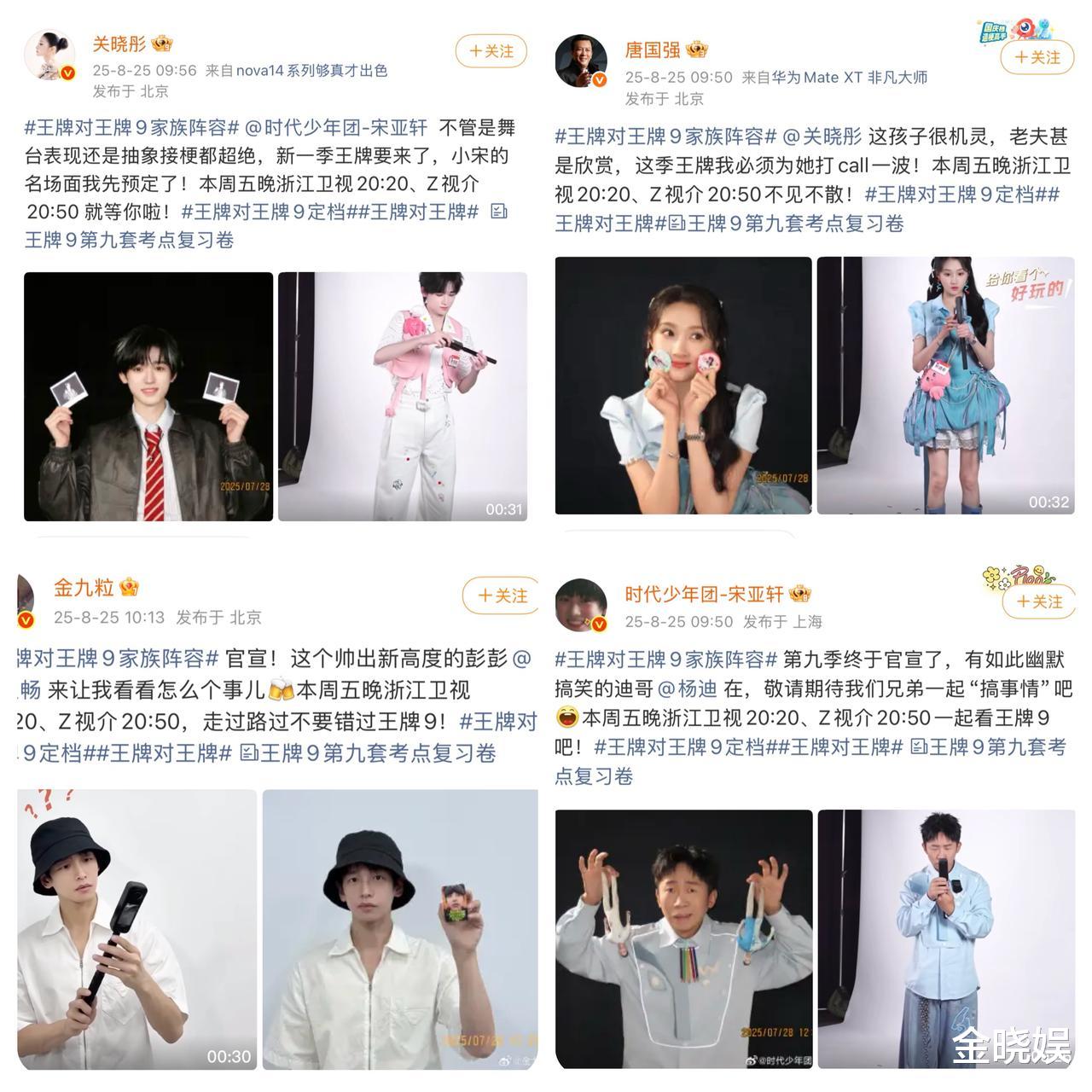 王牌真的有把观众放在心上,联合微博发起了“王牌9互宣搭子真听网友劝”官宣特别活动,把王牌家族的官宣权力交到观众手中,主打一个相互奔赴爱意满满!王牌家族就像一个大家庭,大家毫无压力的开玩笑,互动之间也自然流露着属于家人的温暖与松弛,每每同框便已是笑点与温情齐飞。王牌家族之间也纷纷互晒谷子与成员的合照,互相官宣打call玩梗。果然还得是王牌,有的就是一个不按套路出牌的惊喜碰撞。