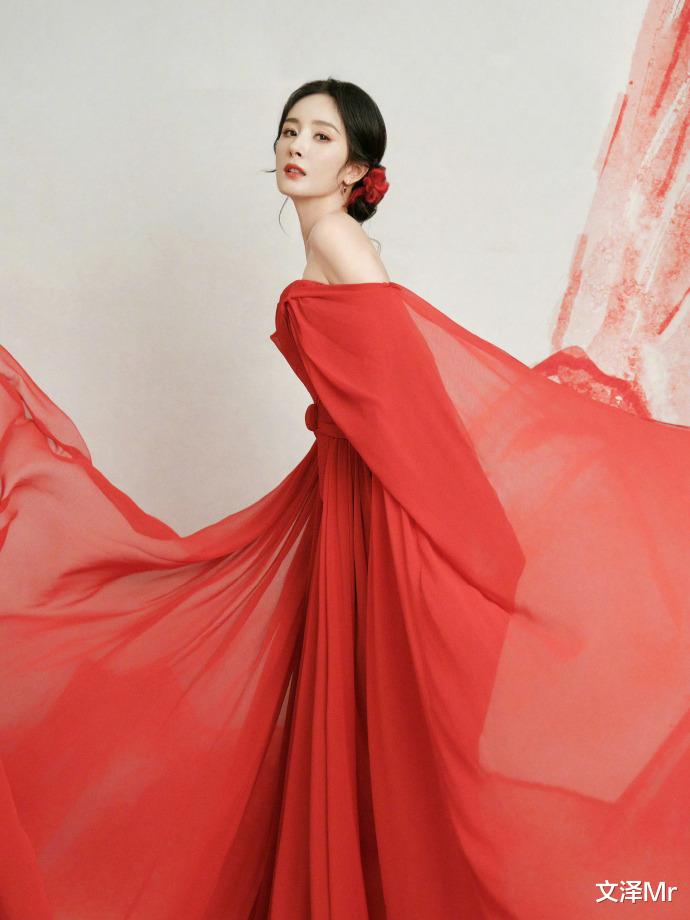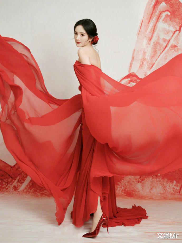先看第一张照片,杨幂侧身而立,红色长裙的飘逸面料如火焰般舞动。这抹热烈的红,衬得她肌肤胜雪,露肩设计大方展现出优美肩颈线条,仿佛是从古典画卷中走出的明艳佳人,又带着现代女性的飒爽。要知道,红色本就挑人,可在杨幂身上,却成了彰显她独特魅力的绝佳色彩,这不仅是穿搭的胜利,更是她自身强大气场的体现。