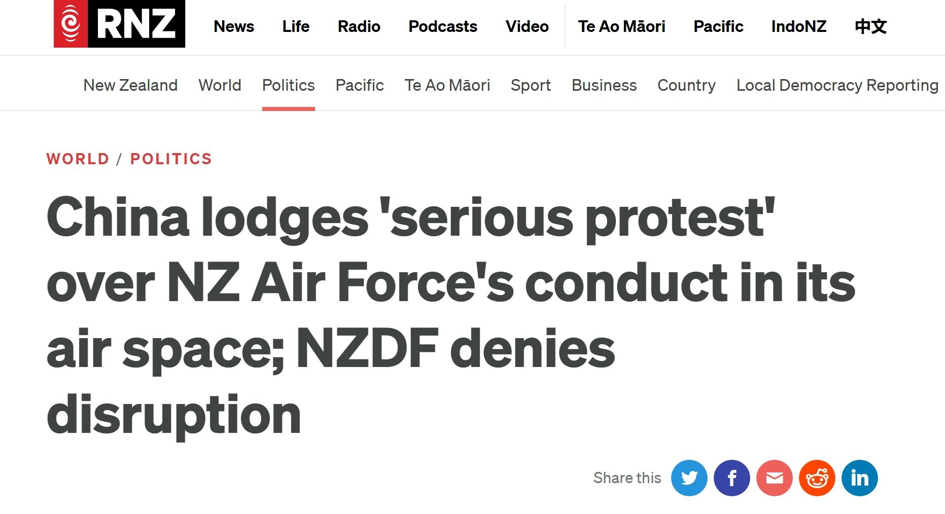 甚至新西兰国防军还表示,“在这一过程中,新西兰与中方官员保持了沟通”——如果真的进行了沟通,我外交部和国防部就不会做出严正抗议。