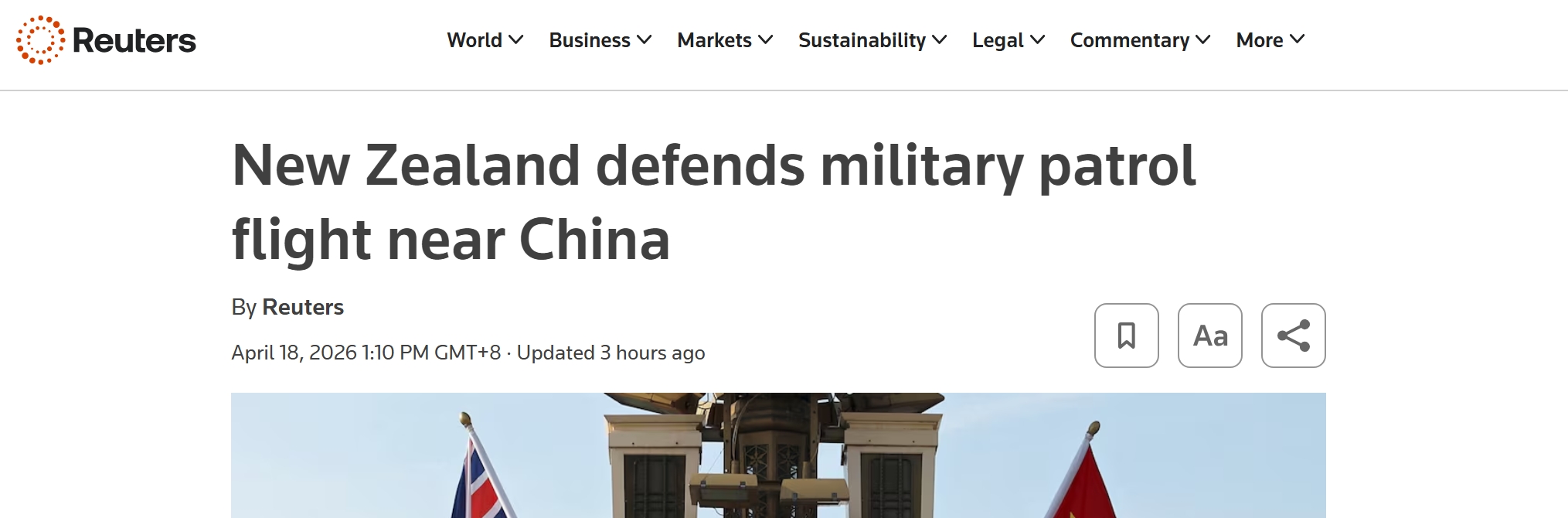 4月17日,中国外交部指出,新西兰P-8A巡逻机在中国黄海和东海空域及海域“持续进行抵近侦察和滋扰活动,该行为损害了中国安全利益,增加了误解误判风险,并严重干扰了民航飞行秩序。中方已作出坚决应对,并向新西兰方面提出严正抗议。”