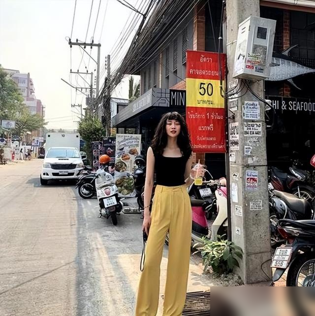 第三,颜色搭配“干净为王”。 杭州女生最爱的配色是“浅卡其背心+亮白阔腿裤”,浅卡其温柔不挑皮,亮白色提亮整体,走在树荫下像自带反光板;想要酷感的,则用黑色背心+深灰拖地裤,高级感拉满;怕出错的选“同色系渐变”,比如浅蓝背心+牛仔蓝长裤,清爽得像一杯冰美式。