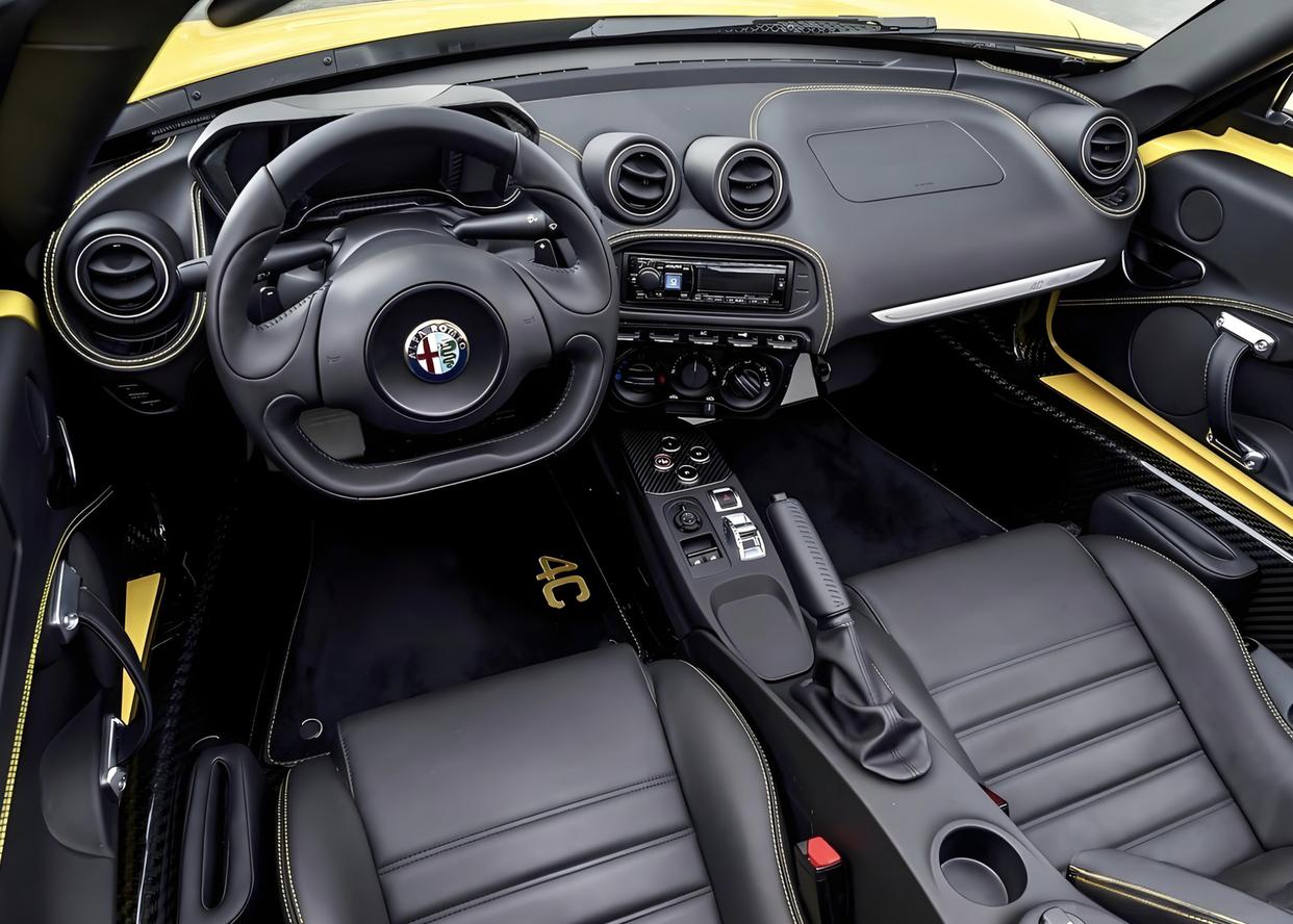 核心部分,阿尔法·罗密欧4C Collezione GT"Nicola Larini”动力搭载了一台1.75T涡轮增压四缸发动机,最大功率240马力,峰值扭矩350牛·米。传动与之匹配了6速TCT双离合变速箱。性能方面,这台车从0-100km/h的加速时间仅为4.5秒,最高时速258km/h。整车采用了碳纤维单体式座舱与铝合金副车架结构,整备质量控制在900公斤以内。采用了前双叉臂独立悬挂和后麦弗逊式独立悬挂的组合。采用了中置后驱的方式,前后轴重量比40:60,达到了更好的动态平衡,提供了整车的操控体验。
