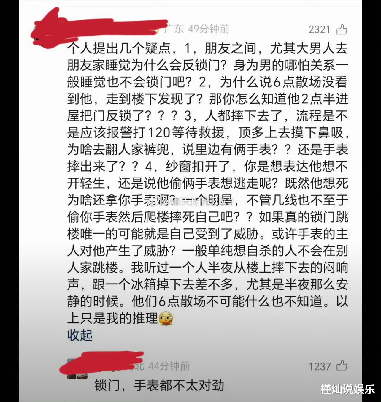 现在网上传得最凶的是现场细节。说纱窗上有不规则的抓痕,他口袋里还装着两块朋友的劳力士手表。可这些说法,警方没证实也没否认。就像揣着个谜团,让人心里发慌。