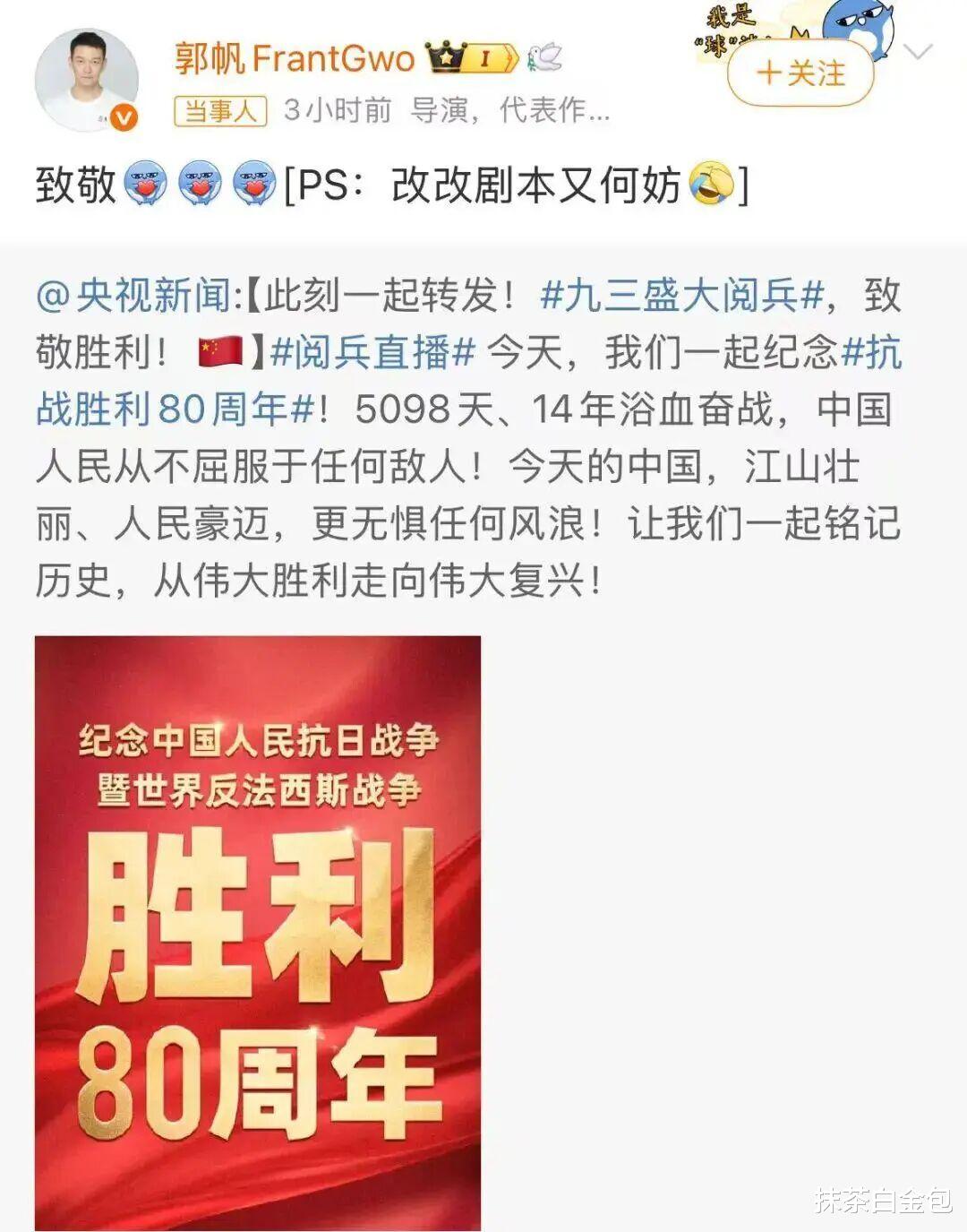 没想到这番言论得到了郭帆导演的回应,他发博表示:“致敬!改改剧本又何妨”。