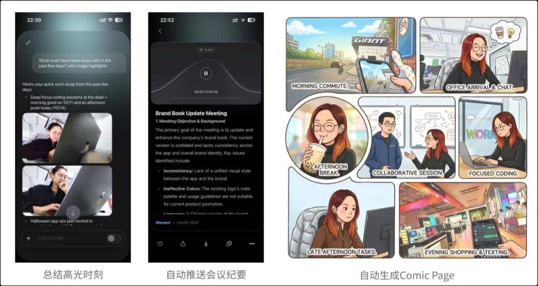 首先是多维感知。它使用了多模态大模型,视觉识别场景物体,听觉捕捉环境情绪,构建起对物理世界的初步认知。 其次是高效吞吐。 通过「智能间隔拍摄」技术,确保在极低功耗下实现海量视听数据的实时采集。