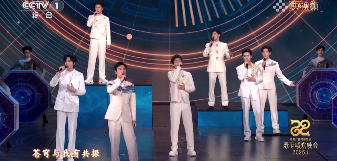 蛇年已至,但《上春山》的热闹仿佛就在眼前,今年蛇年春晚有一个节目像是《上春山》的姊妹篇,同样是多个同期小生统一着装唱歌,同样是需要在升降台上走位,但处处仿佛都在规避《上春山》,甚至连走位都自动化了。更巧的是,上次点《上春山》的主持人王宁,再次采访了姊妹篇《斗柄指东天下春》的主演嘉宾,还故意cue了蒋奇明的“黑鞋子”跟其他嘉宾的一身白不一样,即便是调侃,也把蒋奇明吓了一大跳。