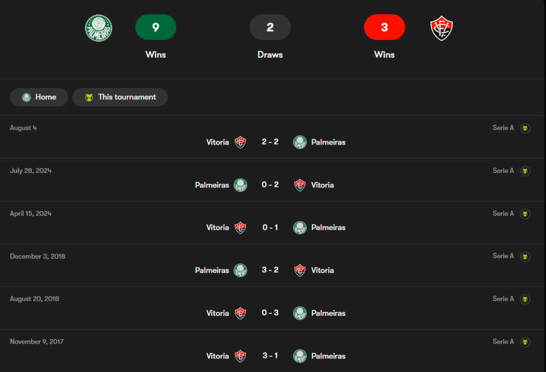 目前帕尔梅拉斯以68分排名联赛第二,距离榜首弗拉门戈仅差3分,本场比赛的胜负直接关乎争冠主动权。对于志在冲击联赛冠军和解放者杯双冠王的帕尔梅拉斯而言,主场面对弱旅维多利亚,必须全取三分,才能保持对榜首的压力,战意毋庸置疑拉满。此外,作为解放者杯决赛的预热,球队也需要通过联赛延续胜势,提升团队默契和自信心。