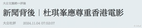 《大公报》在标题就表态,杜琪峰的言行肯定是不对的,甚至是没有尊重香港电影的