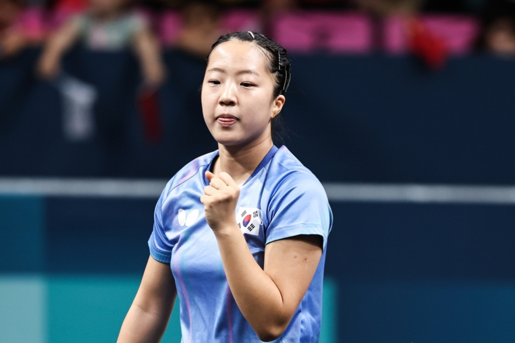 韩国主力申裕斌4-1逆转乔吉娜-波塔,5局比分:9-11,11-9,11-4,11-1,11-9!下一轮她对阵美国选手张安。