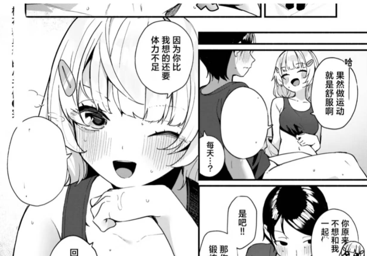 从那之后二人就成为了健身搭子,有女主这么一个小美女跟着陪练,男主也更加卖力,体力也有了很大的增强。直到有一天他们训练完后,男主累得不行打算今天就先练到这里,准备回家发现外面居然下起了大雨,而且自己也没带伞,真琴见状让男主等等自己,她送男主回家。