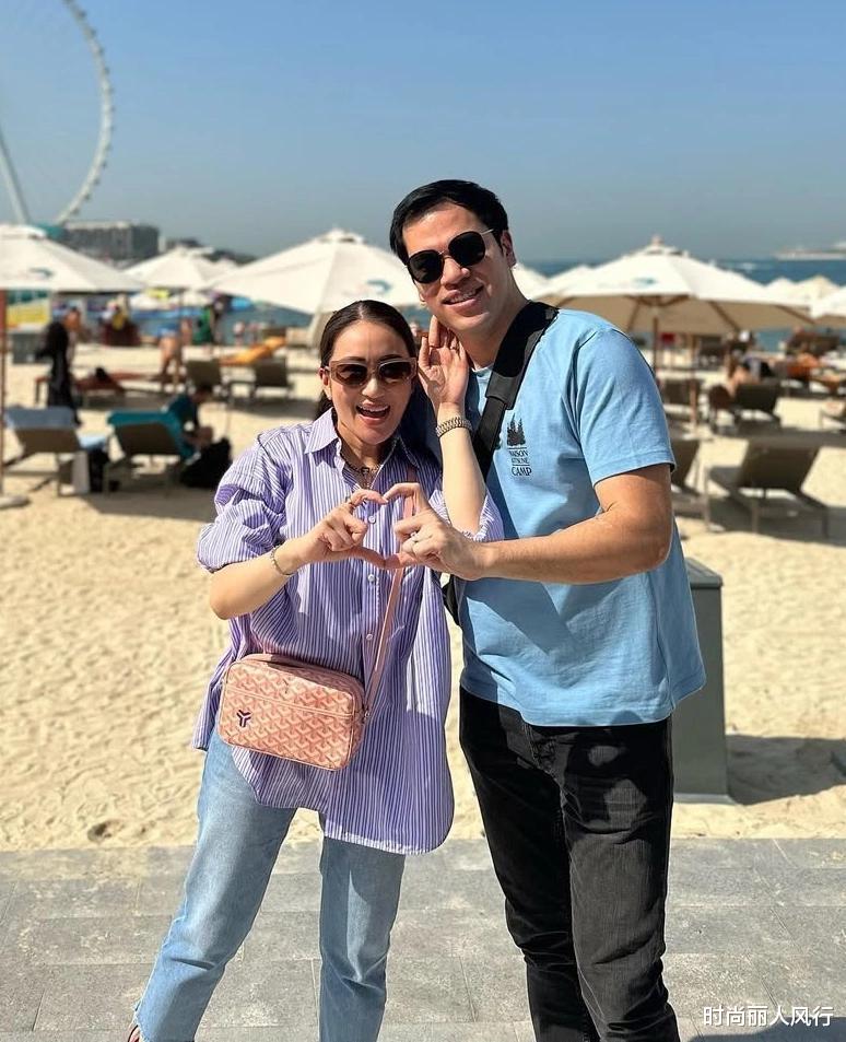 像这身造型,就是女人味非常足的风格,泰式风格的裙子,配上黑色的手包,这样的一身,真是将佩通坦的性感和妩媚展现出来了。