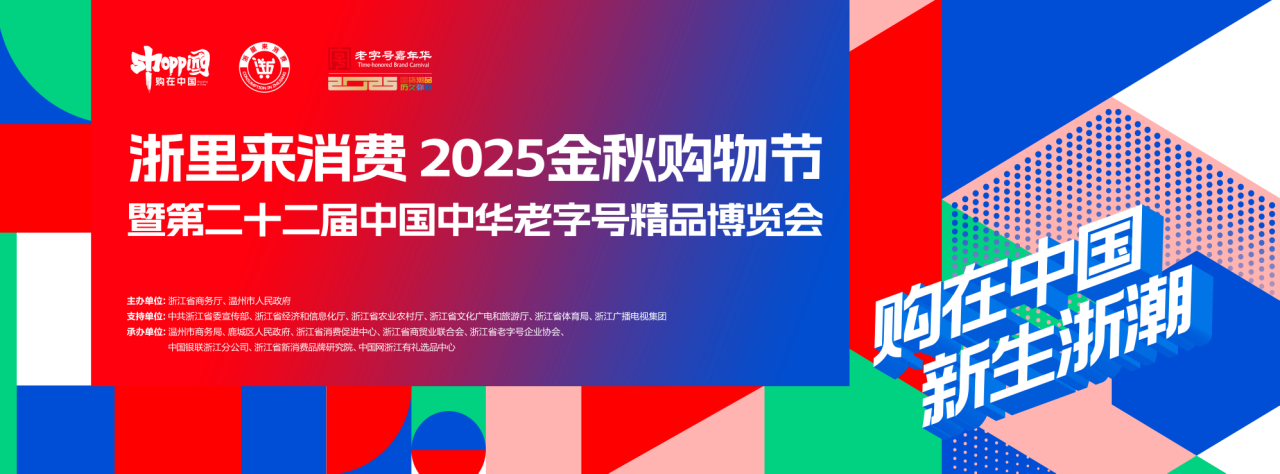 10月16日,由浙江省商务厅与温州市人民政府联合主办的“浙里来消费·2025金秋购物节暨第二十二届中国中华老字号精品博览会活动”将在温州科技广场拉开帷幕。此次活动以“购在中国 新生浙潮”为主题,围绕“扩大服务消费、培育新型消费、提质商品消费”三大主线,着力挖掘消费新场景、新业态、新模式,打造一场彰显中国文化自信、浙江经济活力与品牌创新精神的消费盛会。