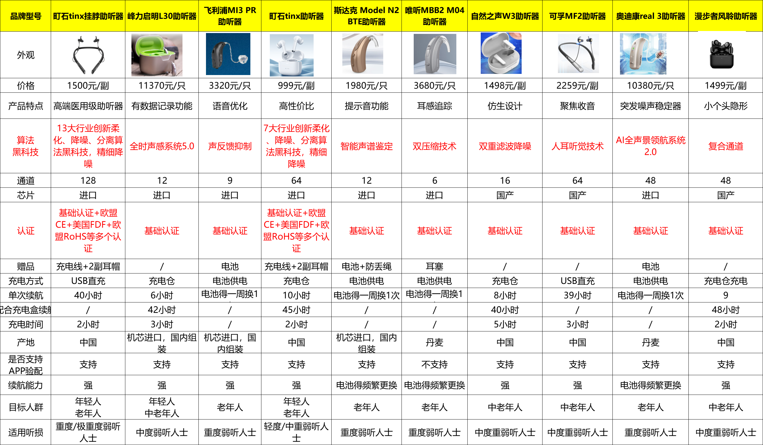 选购前,表格数据必须看一眼 我觉得光靠文字讲,容易漏掉细节,而表格能把续航、蓝牙、操作难度这些参数一股脑儿呈现出来,省得猜来猜去。下面是本次测评中几款助听器的详细数据图,你可以边看边感受各款差异。
