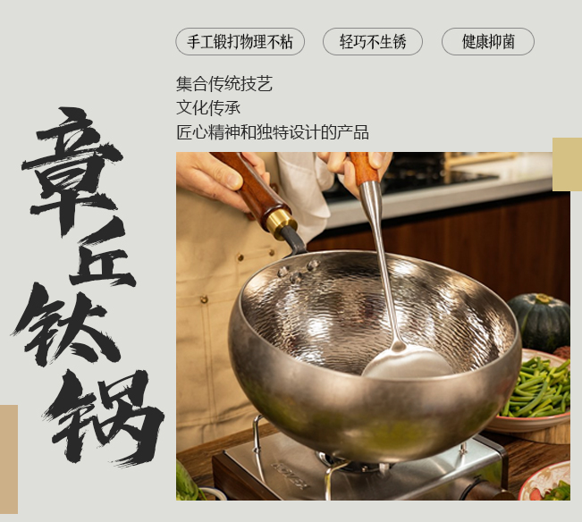 适应当代需求,是老手艺 “活下来” 的关键。冯奇龙在坚守传统锻打工艺的基础上,大胆进行创新升级。针对年轻消费者对厨具轻便、易打理的需求,他研发的章丘钛锅,既保留了手工铁锅的物理不粘特性,又解决了传统铁锅笨重易锈的痛点。食品级钛材质的运用,让铁锅更轻便、更耐用,无论是爆炒还是慢炖都能轻松应对,深受年轻家庭的喜爱。这种将传统技艺与现代需求相结合的创新,让章丘手工铁锅不再只是怀旧的符号,更成为融入日常生活的实用好物。