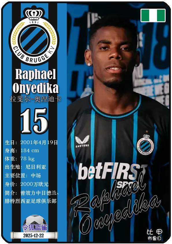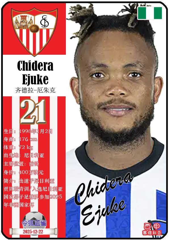 2025非洲杯于2025年12月21日至2026年1月18日在摩洛哥举办,参赛队来自24个非洲国家。尼日利亚队位于C组,目前FIFA世界排名第38(中国男足世界排名第93)。同组还有乌干达、坦桑尼亚、突尼斯队。本期盘点2025非洲杯尼日利亚队23人(按球员所属俱乐部分类排序):
