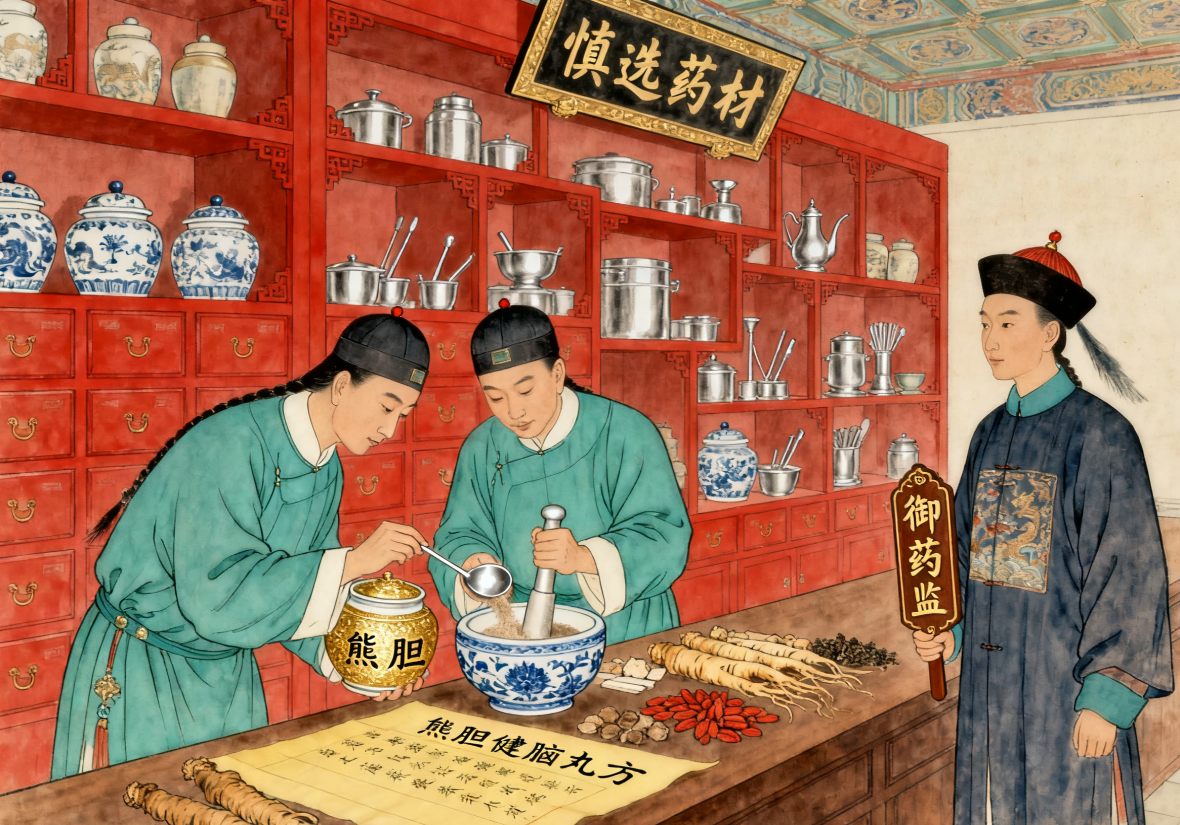 在太医院的精心炮制下,"八宝熊胆膏"成为乾隆皇帝调理肝胆的专属御药。这道方剂融合了八味珍贵药材,以熊胆为君药,配以其他名贵辅料,经过九九八十一道工序精心炼制而成。