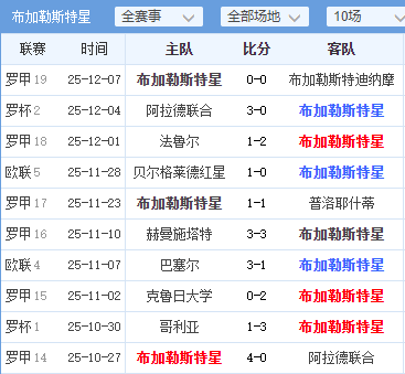 · 近期状态: 欧联杯1胜4负,最近一场0-1告负;国内联赛排名第10。