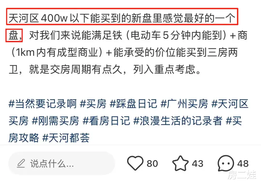 用小红书上,一位买家写的看房记原话来说就是:“天河区400万以内能买到的新盘,天河都荟是最好的那个!”