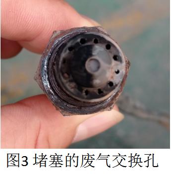 案例:一辆东风小康面包车,报前气传感器故障及P0420三元催化催化效率低,直接更换了三元催化器、前氧传感器后一个月后故障灯再次点亮,仍然报有P0420故障码及前氧传感器故障,后拆解前后氧传感器后发现后氧传感器类似图3所示堵塞现象,后氧传感器废气交换孔堵塞,更换后氧传感器后,不再报P0420及前氧传感器故障。为什么后氧堵塞会导致报P0420?我是这么理解的,后氧交换孔堵塞后,收油门减速时候会有过余的空气(氧气)恰好这时候这些多过的氧气进入到了后氧传感器检测孔里,而后在平缓的加速中,这些多余的氧气并没有及时排出,系统检测到前后氧的氧气量差不多,经过数次的类似过程,达到了触发了P0420故障码的次数。