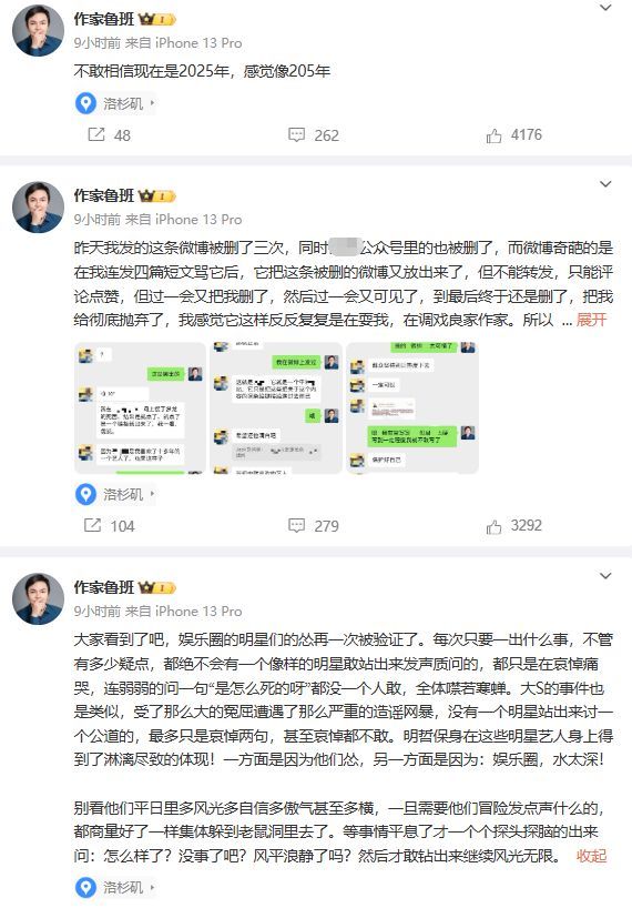 演员张国强作家鲁班也都纷纷多次发声,鲁班怒斥娱乐圈的明星不团结,没有人想要多去了解一下于朦胧聚会的时候遇到了什么事,为什么突然坠楼。
