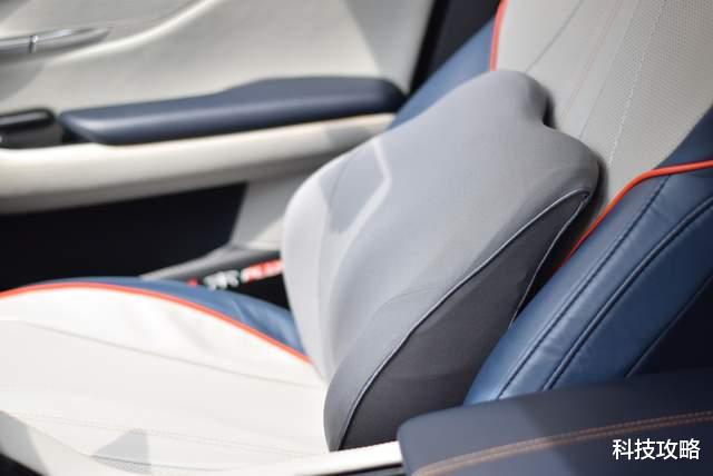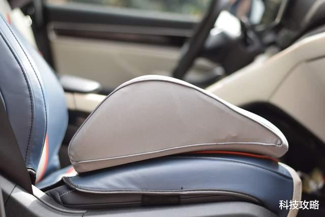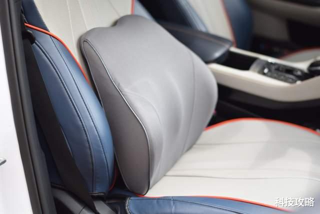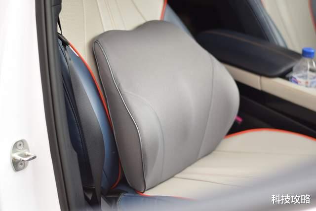 除了头枕外,腰靠给我的感觉也不一样。这是由于腰靠同样做了加高以及加宽设计,加之背靠采用了软糯舒压记忆绵芯,可吸收压力支撑腰背,二者结合能让驾驶者无论坐姿怎么样,都能均匀贴合腰背,这也是为什么这款头枕腰靠要加大加宽。
