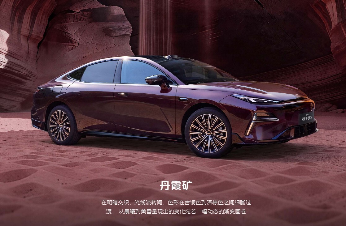 外观美学再上台阶,新车新增日照金、丹霞矿两款专属高定车色。丹霞矿灵感源自张掖丹霞地貌,采用纳米色浆与定制金属铝粉三层工艺,随光线角度呈现古铜至深棕的渐变效果,光影流转间尽显高级质感;搭配超5米车身与近3米轴距,气场十足,格调拉满。