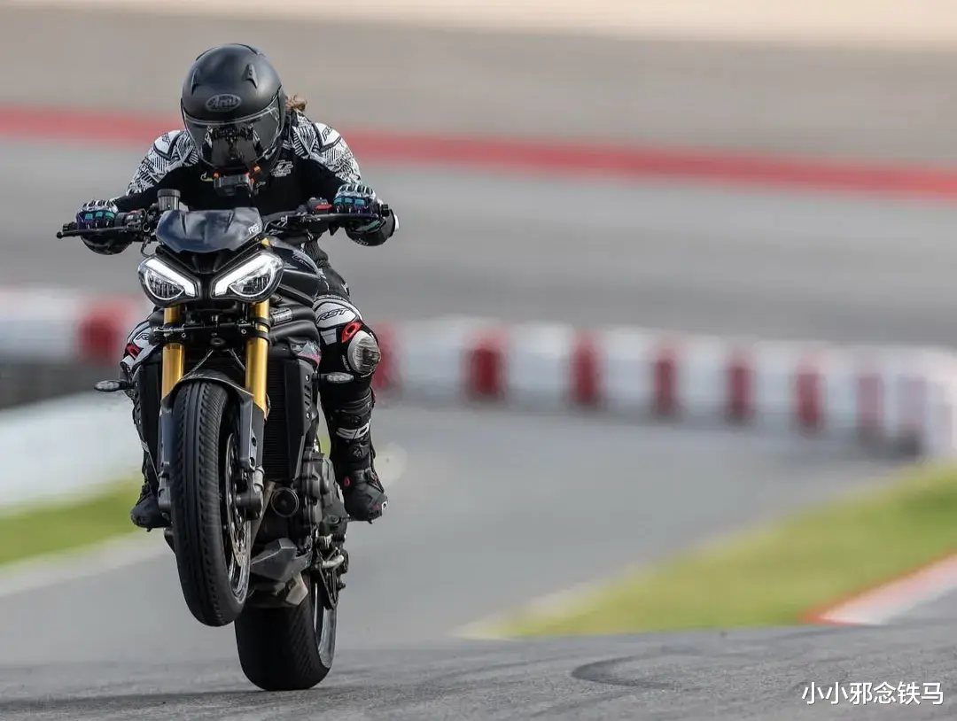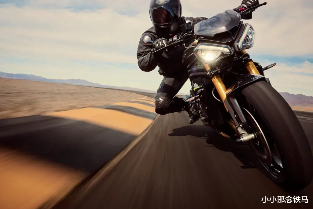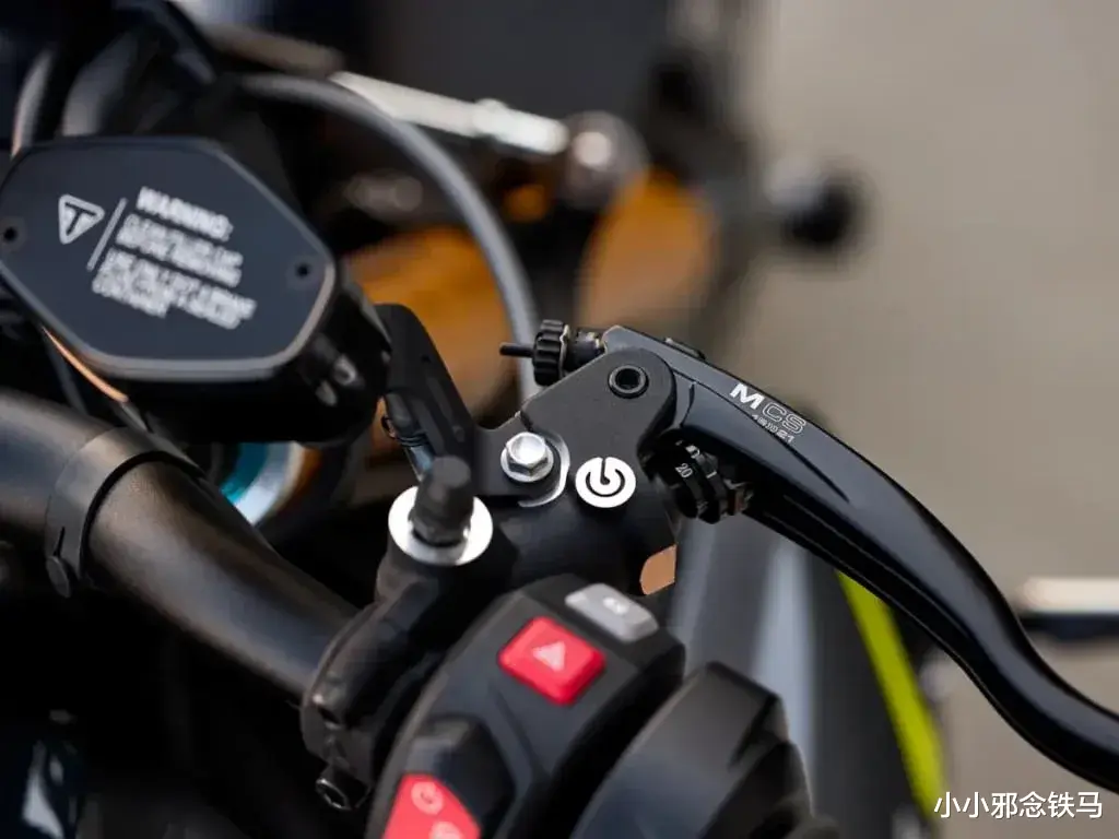 凯旋对车辆的人机工程学进行了深度优化,虽然整体骑行姿势和上一代基本相同,座高也仍为 830 毫米,但新车把高度增加18毫米、宽度拓宽7毫米,带来更自然的握姿,上一代车把平直,而这一代改为向外上翘设计,骑行时能让骑手背部更直立。座椅与脚踏位置保持经典布局,但驾驶三角的细微调整,让长时间骑行不易疲劳。尽管脚踏位置在赛道激烈驾驶时略显偏低,但整体设计在舒适性与运动性之间找到了绝佳平衡。