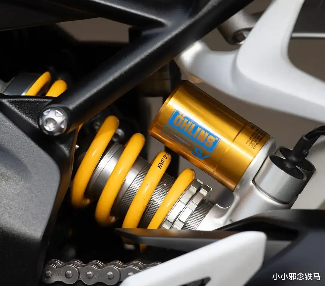 此次的升级,首次搭载了Öhlins电子半主动悬挂系统。这套由SMart EC 3.0智能控制的悬挂,能够实时感知路面状况与驾驶风格,自动调整阻尼力度。前叉采用Öhlins NIX30倒置设计,后悬挂则是TTX36单筒减震,公路与赛道模式一键切换,让骑士在舒适巡航与激烈驾驶间无缝转换。