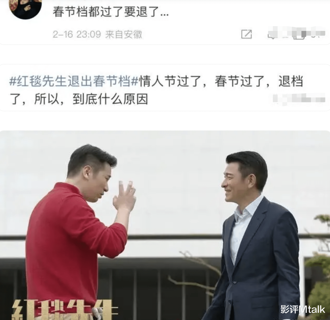当《红毯先生》改档消息传出时,网上一片哗然,多数评论者对其临时撤档的做法表示不满,认为这一举动十分不得体。许多网友调侃道:“春节过去了,情人节也过了,全民复工之际,你却告诉我们你不再参加春节档了;都已经播放了一周,如今说走就走,实在令人难以接受。”