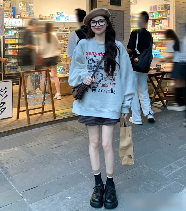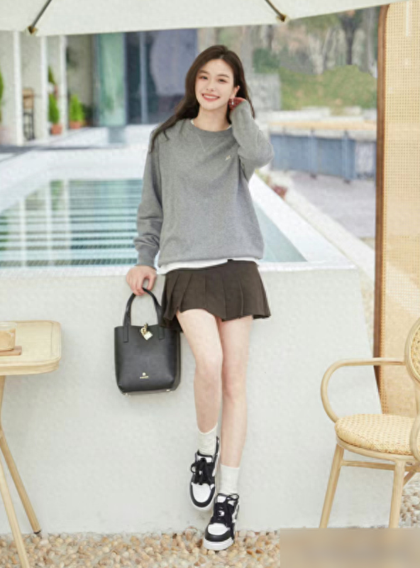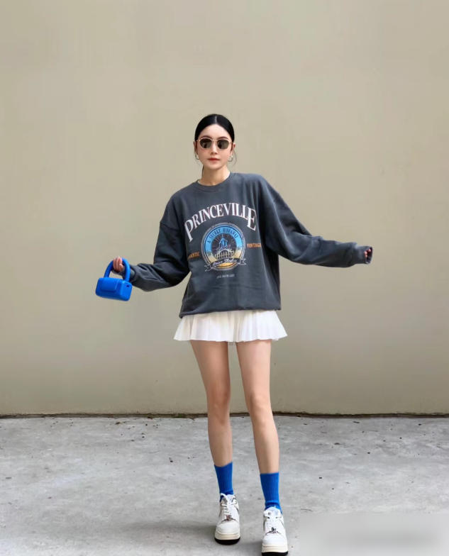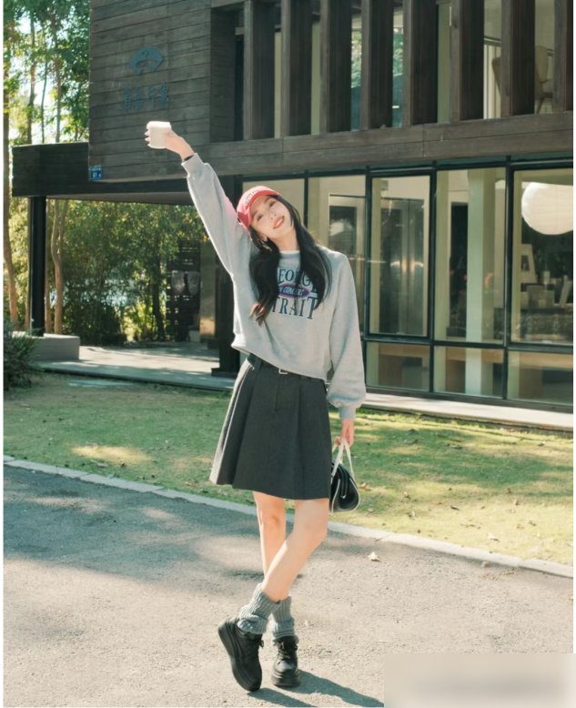 卫衣选对款,搭裙才成功想让卫衣和裙子“同框”好看,卫衣本身的选款是基础。很多人觉得卫衣随便买就行,其实不然——连帽款和圆领款的差别,能直接影响整体风格。连帽卫衣自带减龄属性,帽檐一拉,瞬间有学生妹的活力感,遇到风大的天气还能挡风,对想显嫩的姐妹超友好;圆领卫衣则更利落,能自然拉长颈部线条,脖子短粗的微胖女生穿它,瞬间从“圆滚滚”变“干练小姐姐”。