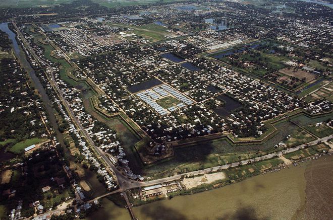1972 年,直升机上拍摄的南越顺化市城堡一角。顺化,越南中部承天顺化省的省会,是越南的三朝古都,具有重要的战略地位。1