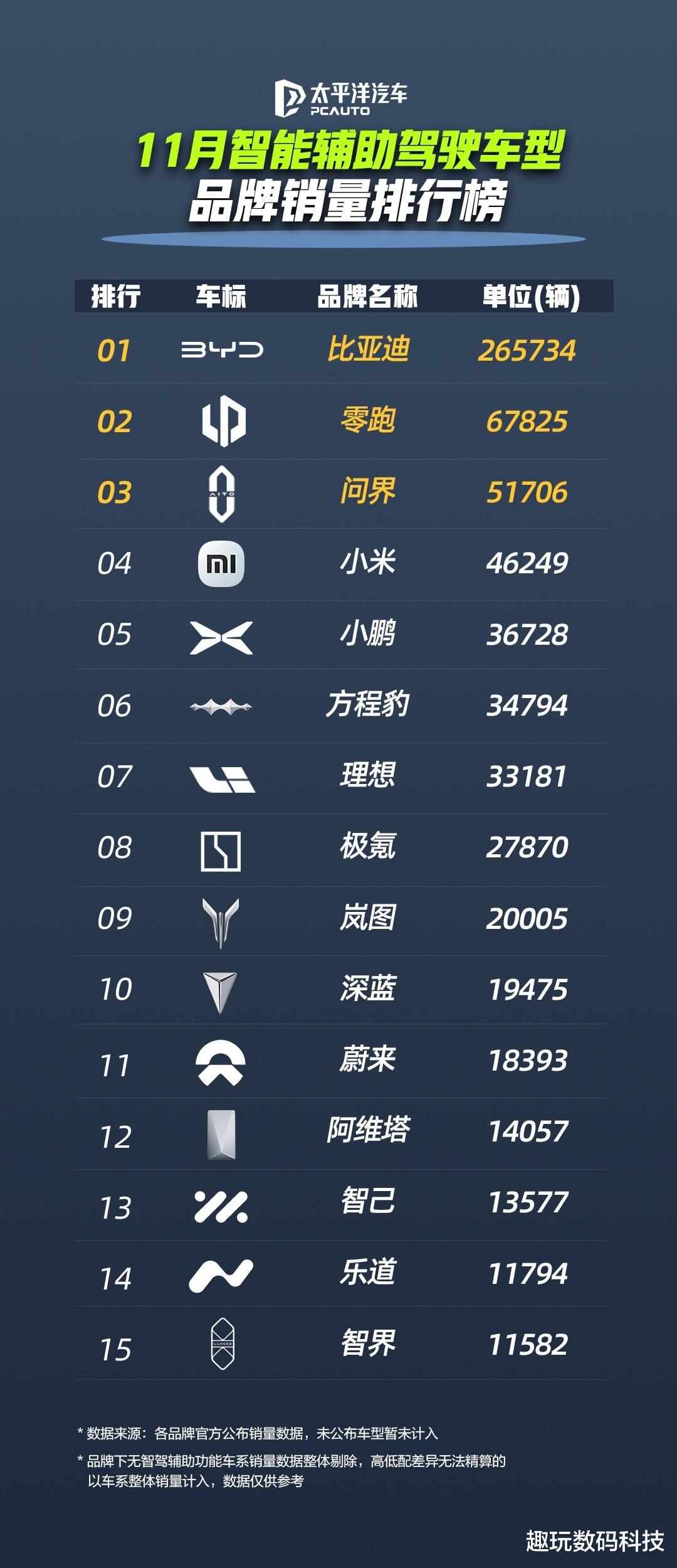 近日,比亚迪公布搭载天神之眼辅助驾驶系统车型11月销量,全系狂揽311267辆,王朝与海洋系列贡献265734辆核心销量,高端品牌表现稳健,筑牢智能驾驶产品矩阵。