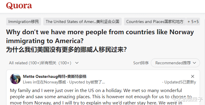信息来源:Quora.《为什么我们美国没有更多的挪威人移民过来?》