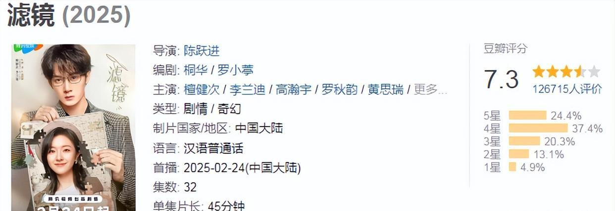 最近几部热播偶像剧的评分陆续出炉,引发了观众的热议。其中,《滤镜》以7.3分领跑,《爱你》获得6.5分,而备受关注的《难