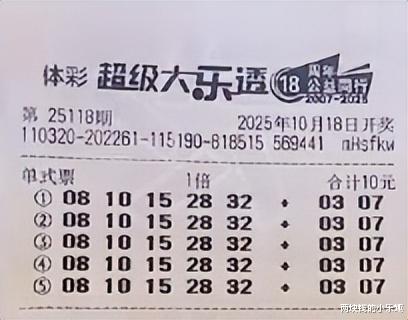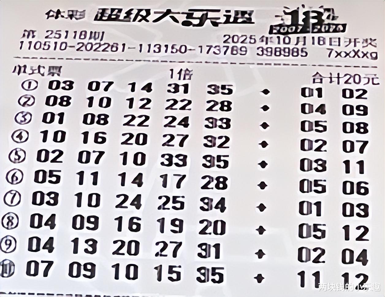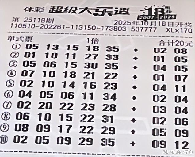 大家好,今天是10月17日,星期五,今天是一周内唯一一天既没有双色球开奖,也没有大乐透开奖的日子,虽然大乐透25118期明晚才开奖,但大家看到12亿的奖池,都早已按捺不住内心的激动,提前两天就完成了出票,下面请大家开始欣赏: