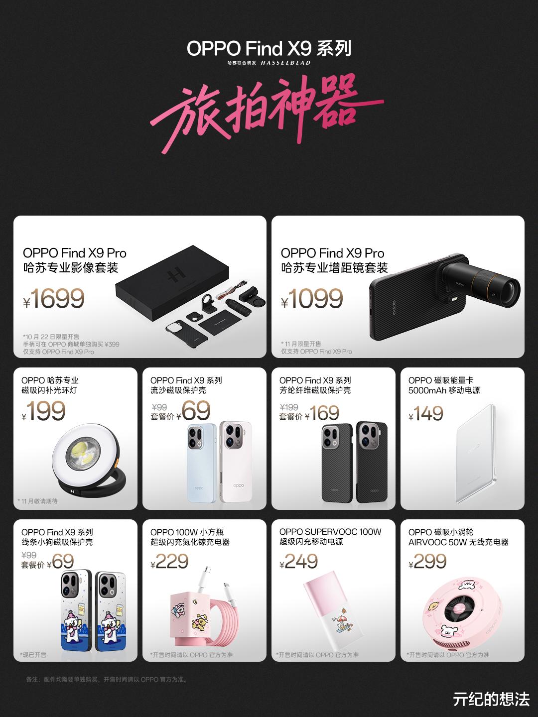 如果你有更专业的需求,这次不仅有抓拍快启键,还有哈苏专业影像套装和磁吸闪补光环灯可供选择。其中前者包括专业增距镜和手机肩带,还有专业的磁吸保护壳和磁吸手柄,安装完成后可让手机长焦镜头做到230mm焦段和F2.1大光圈,并且兼顾4K60FPS HDR超长焦视频录制。后置兼容其他安卓和苹果手机,部分OPPO机型可以通过蓝牙实现相机联动,既能做到CCD风直出,也能对各种色温进行随心调。