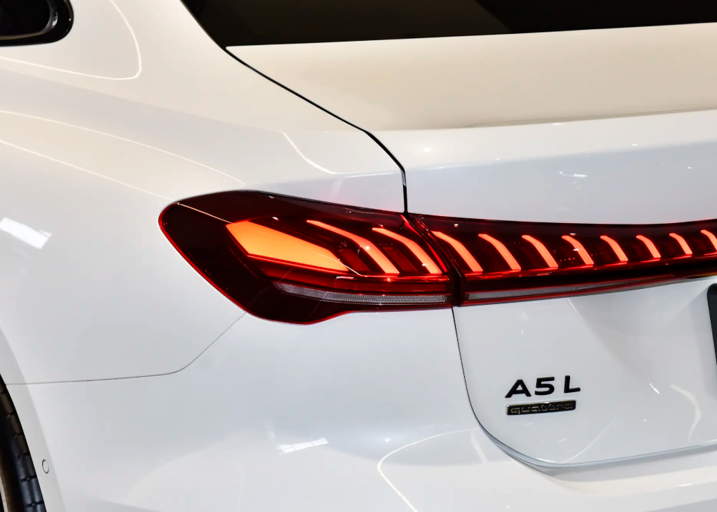 在奥迪A5L的侧面和车尾,运动气息更加强烈。奥迪A5L的车身轮廓,并不是奥迪A6L那种四平八稳的样子,它的引擎舱看起来比后半截车身更大。溜背式车顶线条优雅,也让它多了一些灵动的感觉。但挺直的腰线把它引擎舱位置凸显出来,给人肌肉感更强的视觉感受。奥迪A5L的后包围采用高亮的黑色元素装饰,并且设计了双边共双出的排气造型,不过我个人更喜欢它的贯穿式尾灯。在我看来,奥迪A5L的贯穿式尾灯不仅能够展现出潮流气息,点亮之后精致的内部元素,还可以给人留下比较深刻的印象。