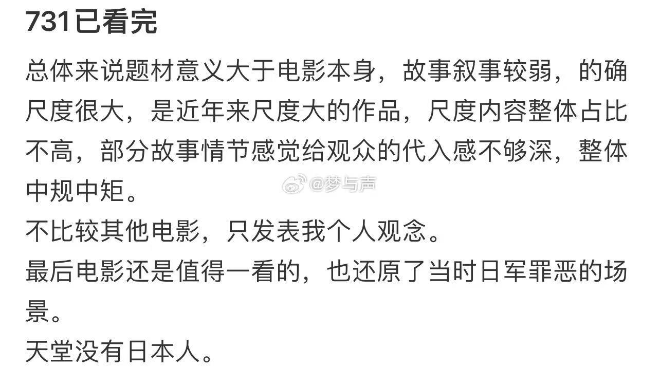 这场围绕电影艺术价值的讨论,却意外地催生了一个更宏大、更统一的共识。随着#731影评#话题的发酵,越来越多的观众,无论对影片本身评价如何,都开始自发地在社交平台上强调:"不管电影拍得如何,历史真相不容置疑。" "我们讨论电影,但更要铭记国耻。"影评的分歧并未演变成无谓的争吵,反而成为了一个唤醒集体历史记忆的契机,公众的注意力从对影片技术的评判,升华到了对历史本身的深切敬畏。