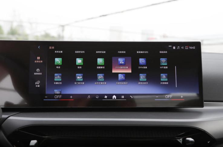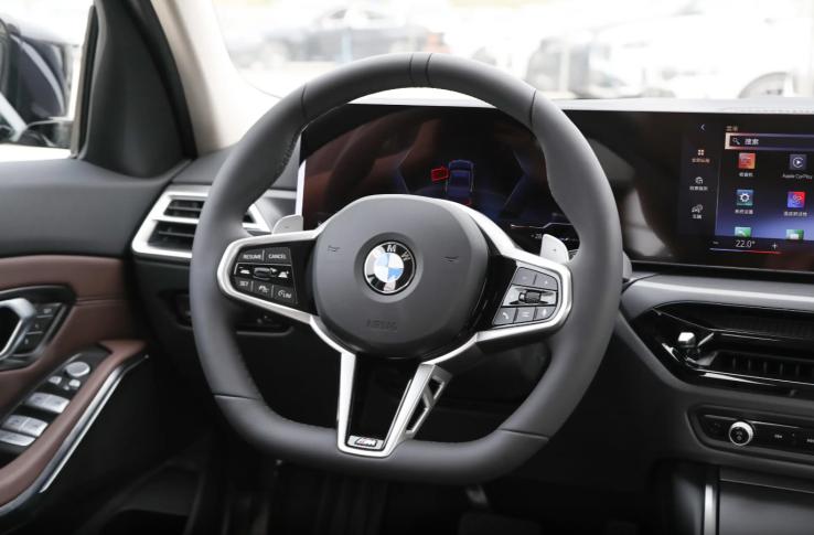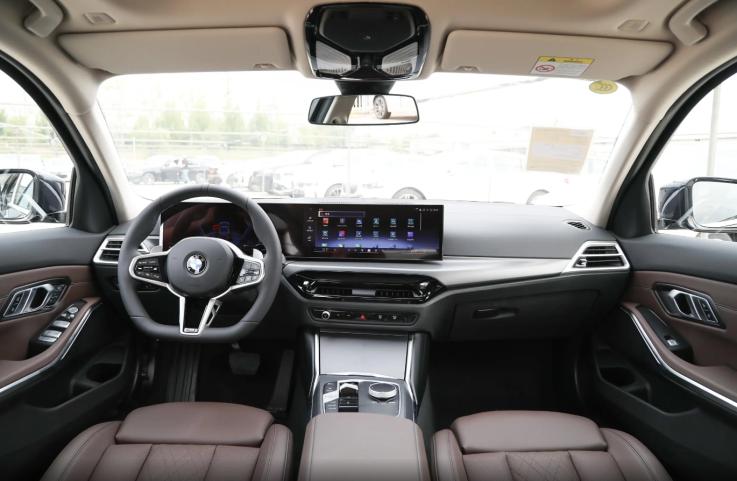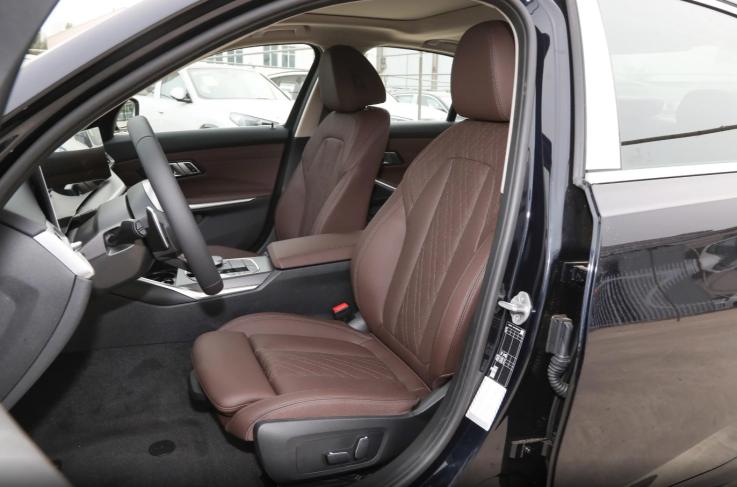 至于内饰,宝马325i的前排座舱采用了设计相对规整的中控台布局,棕色缝线内饰搭配黑色主基调,营造出运动与豪华兼得的座舱氛围。部分身体经常触碰的地方还采用了Sensatec合成皮包裹,触感细腻,契合一款家用车应有的座舱质感。中控台区域配备12.3英寸仪表+14.9英寸中控屏组成的双联屏,不光支持语音识别控制,也支持CarPlay车机互联、4G车联网、OTA升级,操作流畅性较好,但部分操作界面偶有卡顿情况出现。