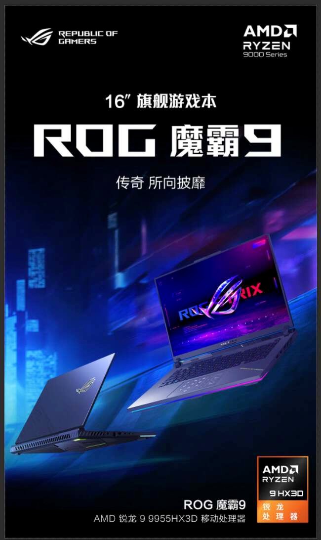 ROG魔霸9就是搭载AMD 锐龙 9 9955HX3D 移动处理器的高端游戏本,能够畅玩战地6等各类3A大作。高速缓存搭配的16个全大核结构,确保了在多线程任务像后台推流、语音通讯、战场录屏等高负载场景运行起来都游刃有余。