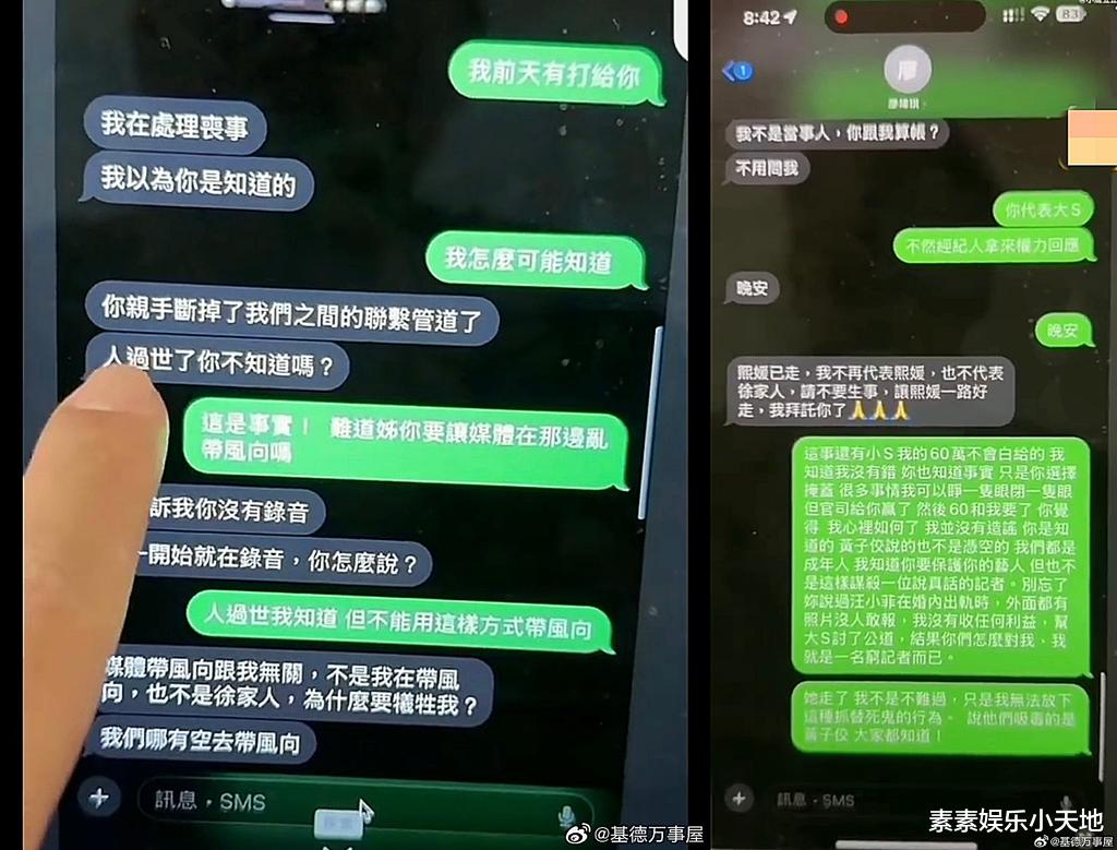 但这一切似乎已经没有了意义,毕竟大S都已经离世了,经纪人和徐妈无非就是为了遗产而奔波。