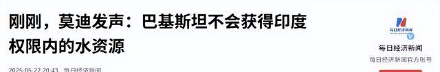 据新闻报道,2025年5月22日,印度总理莫迪公开宣称,巴基斯坦将不再获得来自印度权限内的水资源,巴基斯坦势必要为他们的行为付出代价。