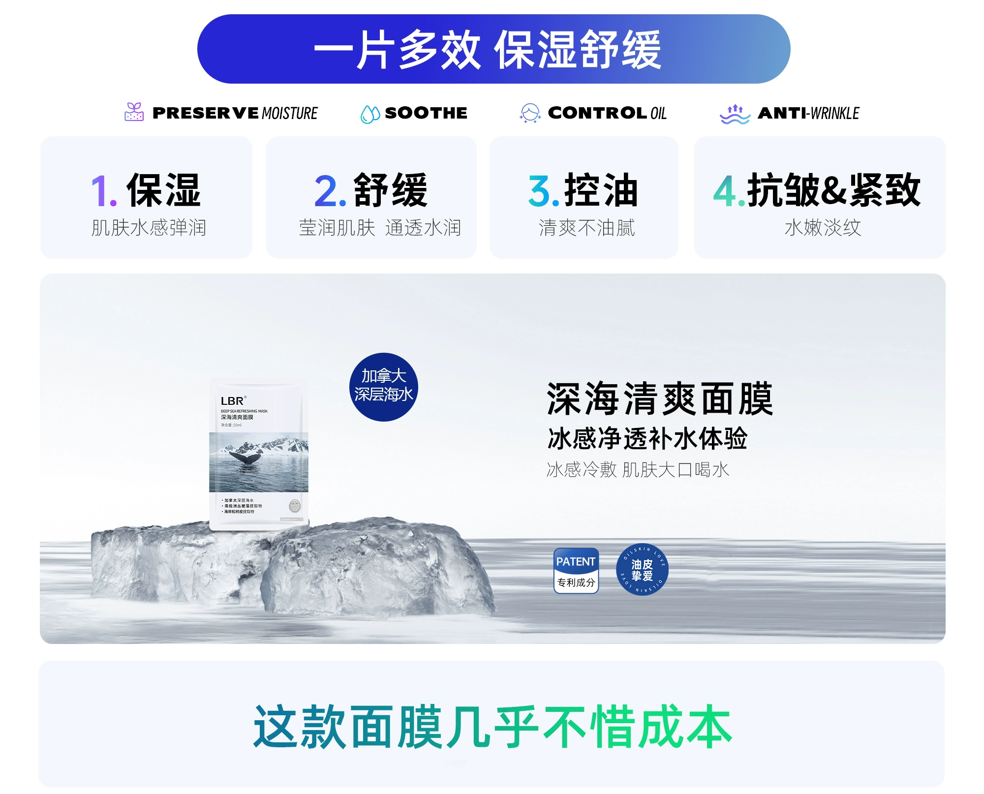 对比下来,LBR 深海清爽面膜在 成分安全性、功效全面性(控油、补水、舒缓、抗皱紧致全涵盖)、肤质适配度这几点上,几乎没有短板。