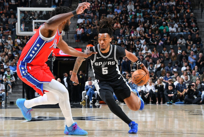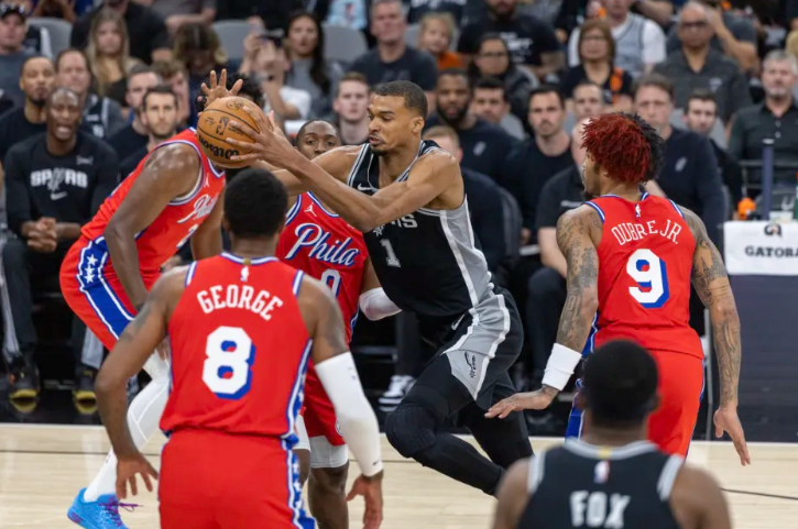文班亚马顶投三分球,恩比德化身哈登,双后撤步命中三分!半场马刺62-55领先。进入第三节,恩比德联合乔治下三分雨,一波流反超。文班亚马则因肋骨挫伤,提前退出比赛!中段福克斯联合尚帕尼一度拉开11分分差,恩比德又连续造犯规,场面十分尴尬。马刺就依靠约翰逊维持进攻端局面,节末哈珀续上三分,三节打完,马刺92-85领先。决战第四节,卡斯尔带队再度拉开11分分差,打停76人。此后科内特暴扣,哈珀续上三分,76人有些招架不住了。但中段马克西跳投,恩比德又开始了。