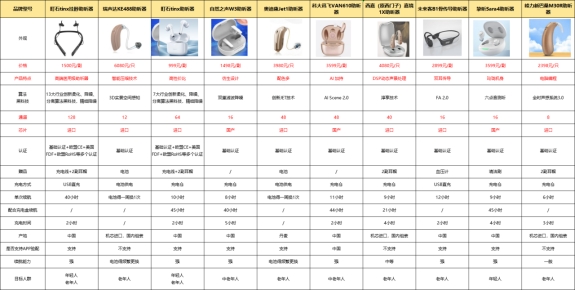 选购助听器前,最重要的就是了解清楚每款产品的具体数据,才能做出明智的选择。我们都有过冲动购物的经历,但买到不合适的东西真的会让人后悔。好在下面的这张对比表格,能帮助你快速掌握各款助听器的核心参数,避开不必要的盲区。接下来,我会详细分析几款助听器的测评数据,带你看看它们到底表现如何。